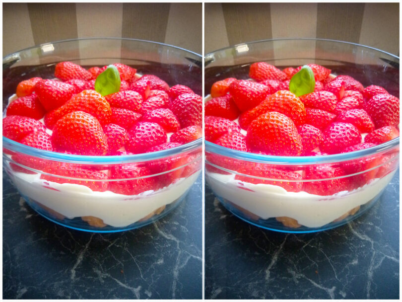 - Eine Schicht Erdbeeren auf die Creme legen.