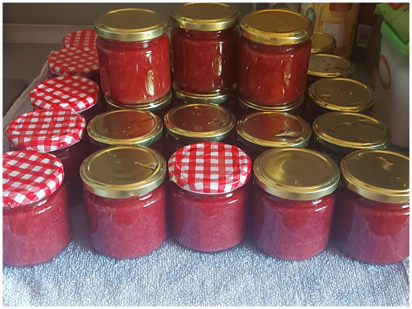 - Die heiße Marmelade in sterilisierte Gläser füllen und sofort verschließen.